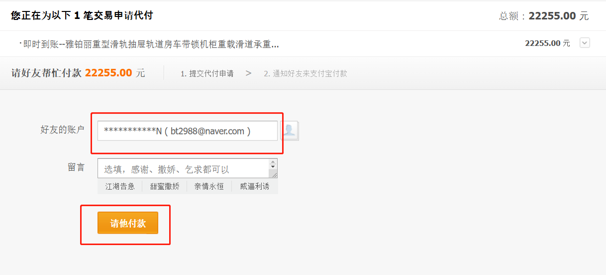 주의! 알리페이 대리결제는 하루에 5번으로 제한되어 있습니다.